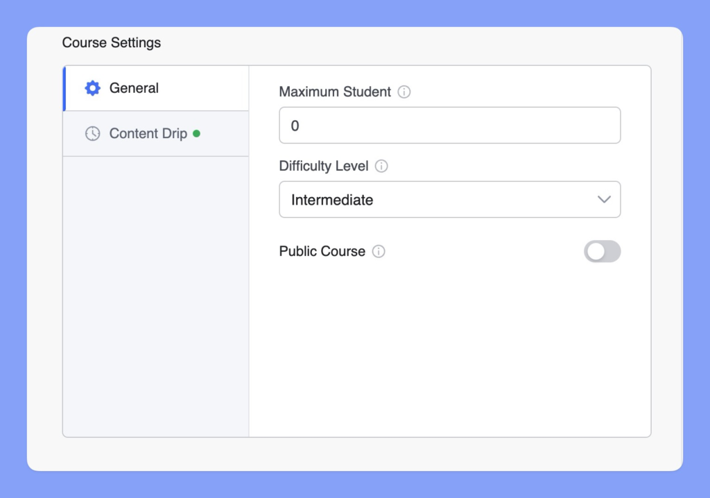 Setările cursului vă permit să personalizați aspectele cheie ale cursului dvs., asigurându-vă că acesta se aliniază cu obiectivele dvs. de predare și cu nevoile studenților. Iată o defalcare a setărilor disponibile.