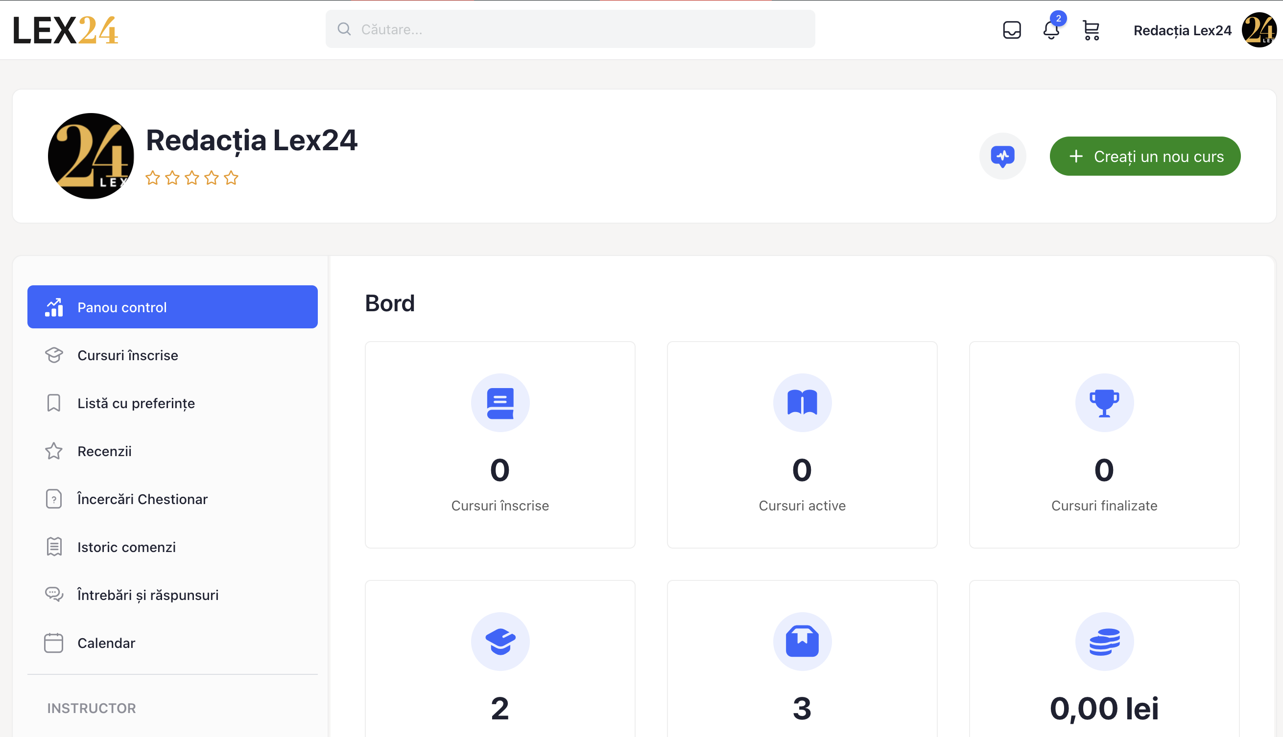 - Pentru a crea un curs nou, faceți clic pe butonul Creați un curs nou.