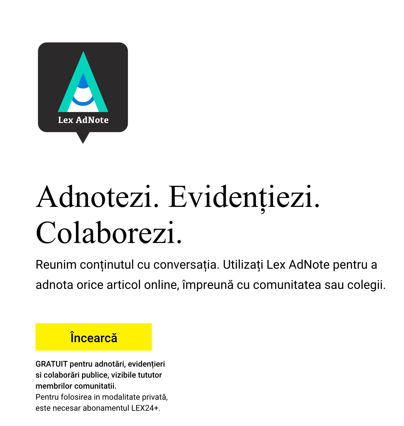 Pentru folosirea Lex AdNote in modalitate privată, este necesar un abonament LEX24+